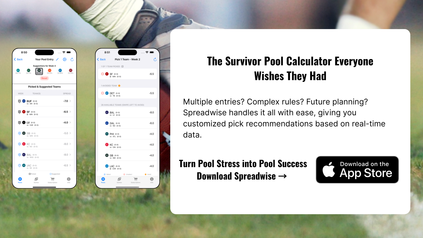 The difference between winning and losing your pool often comes down to making just one better decision than your competitors. Spreadwise gives you that edge every single week.